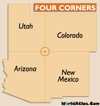 The Four Corners is a region of the Southwestern United States consisting of the southwestern corner of Colorado, southeastern corner of Utah, northeastern corner of Arizona, and northwestern corner of New Mexico. The Four Corners region is part of a larger region known as the Colorado Plateau and is mostly rural, rugged, and arid. In addition to the monument, commonly visited areas within Four Corners include Monument Valley, Mesa Verde National Park, Chaco Canyon, Canyons of the Ancients National Monument and Canyon de Chelly National Monument.